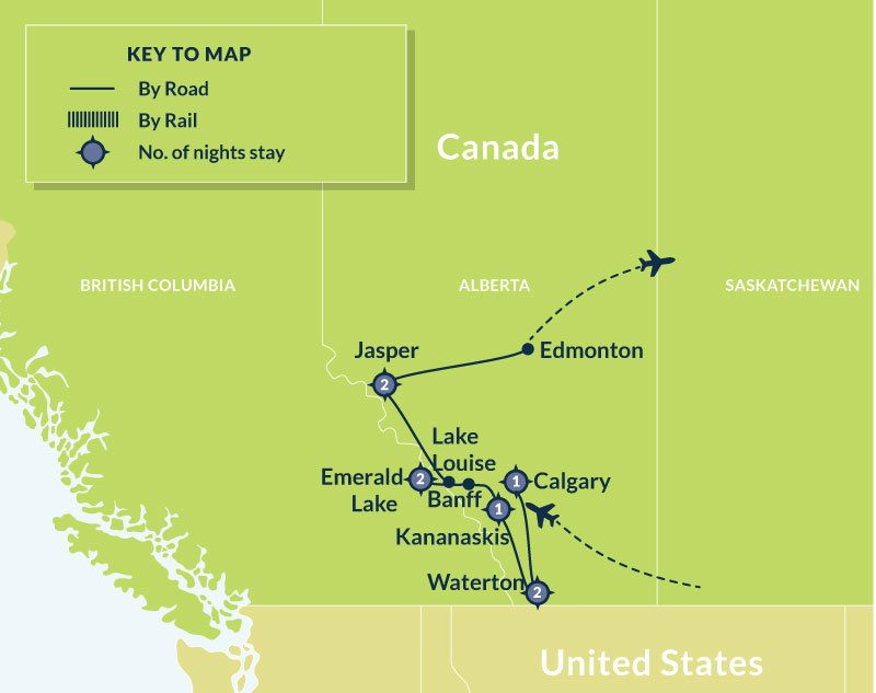 Drive to Edmonton where you return your rental car and continue on your journey home